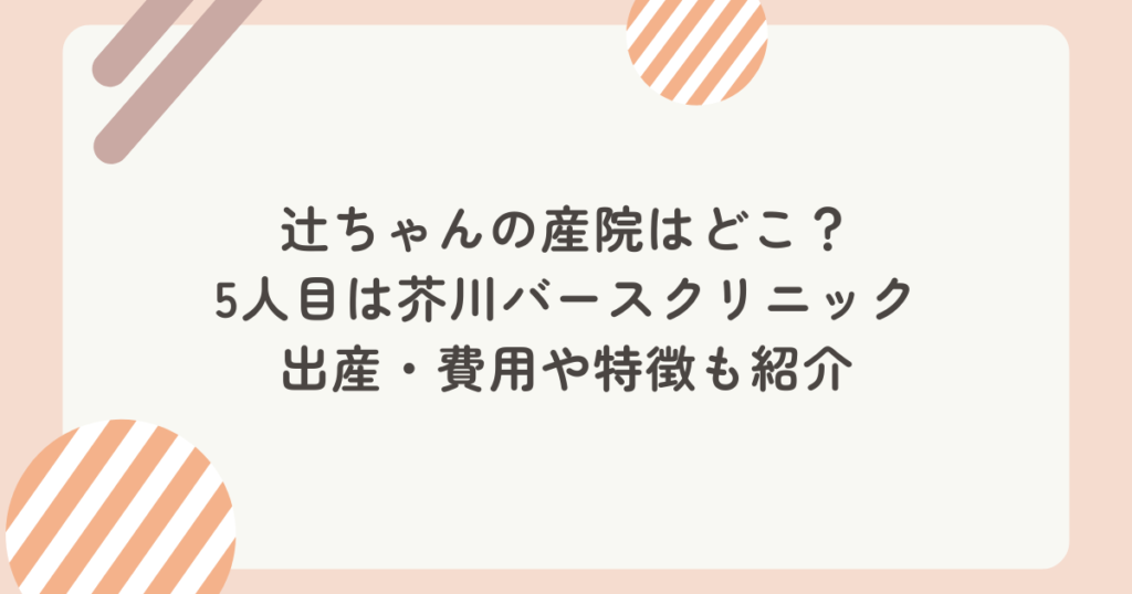 辻ちゃんの産院はどこ?5人目は芥川バースクリニックで出産・費用や特徴も紹介